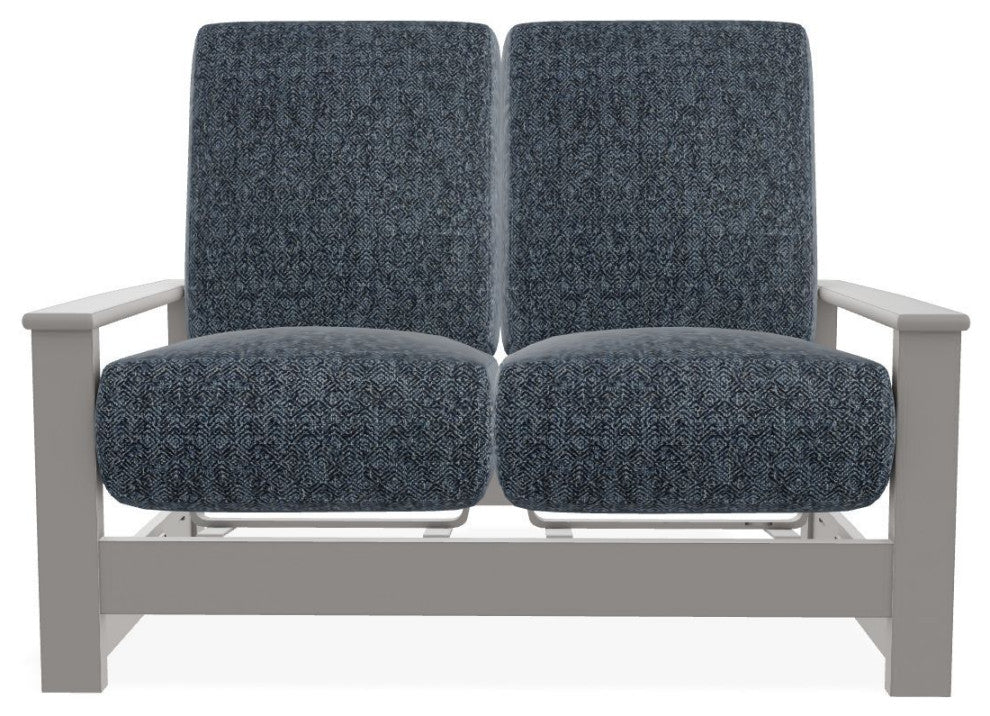 Leeward Deep Seat Outdoor Loveseat with Hidden Motion, Restore Indigo/Warm Gray
