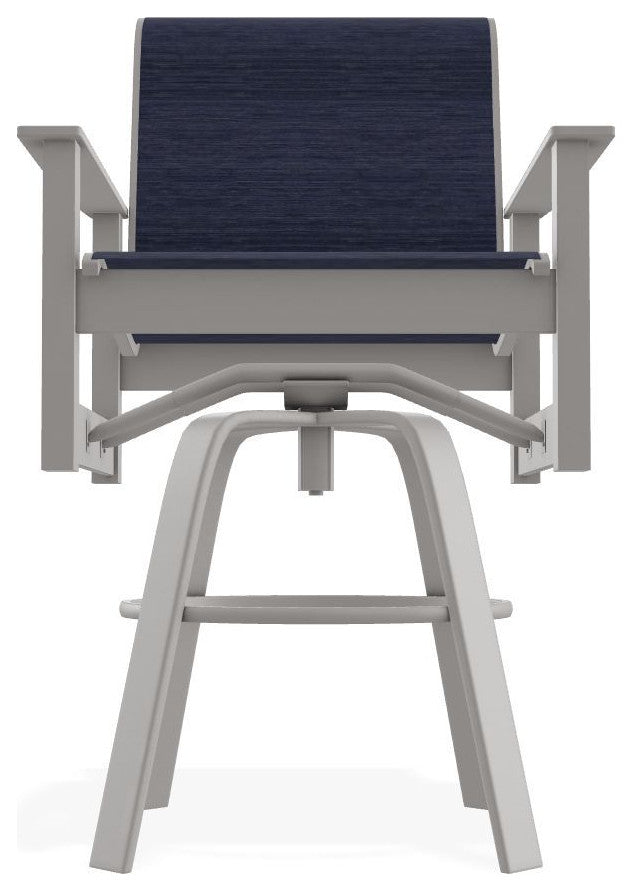 Leeward Sling Bar Height Outdoor Swivel Armchair, Collect Indigo/Warm Gray