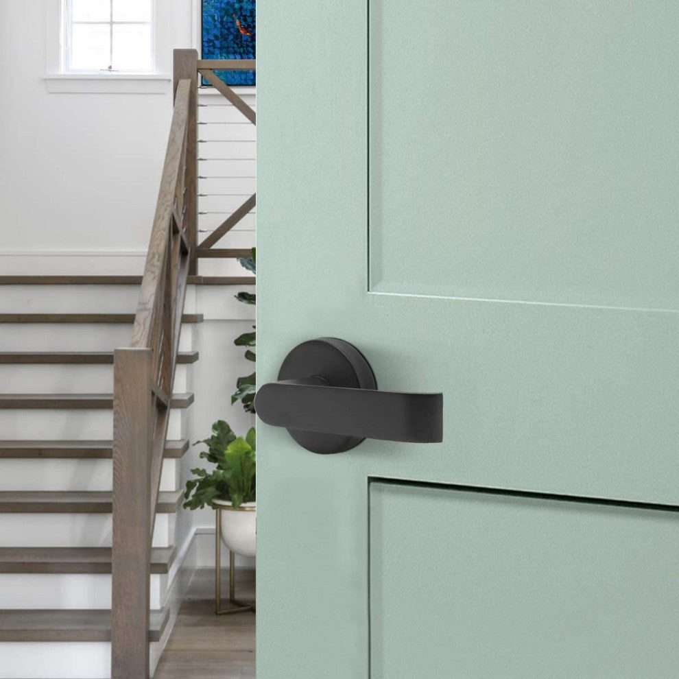 EASY INSTALLATION: Install your leverset in a flash. All you need is a door and a tool set! No need for professional door fitters, you can do it yourself!PASSAGE FUNCTION: No lock for the leverset. Use it for any door for spaces that need to stay accessible, but where you sometimes need peace and quiet - closets, hallways, consulting or conference rooms; Material: Zinc Alloy; Finished Color: Matte Black.ONE SIZE FITS MOST: This HEAVY DUTY door lever fits 1-3/8" to 1-3/4" doors; Reversible for both left handed and right handed doors. (Notice: The latch plate is unremovable.)QUALITY IS BUILT IN: The solid zinc alloy and brass, smooth finish, polished appearance and substantial, easy-to-grasp lever will subtly elevate and enhance commercial areas or residences alike.CLASSIC DESIGN: It"™s not just a door lever "” it"™s a statement piece. These gorgeous levers with no protruding flanges, screws or rough edges ensures completely safe and easy operation, are sure to add a touch of sophistication to your home.