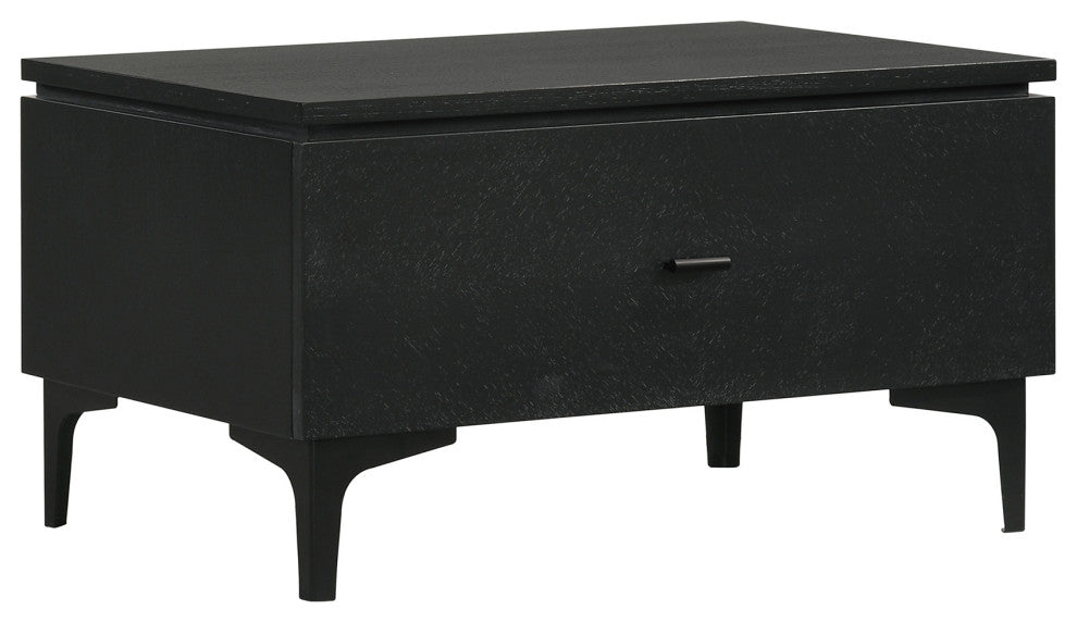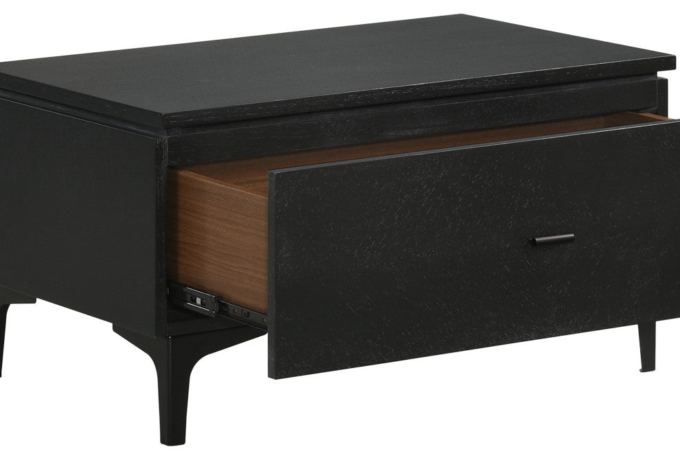 Legend Black Glaze Ash Veneer 1 Drawer Nightstand With Metal Legs