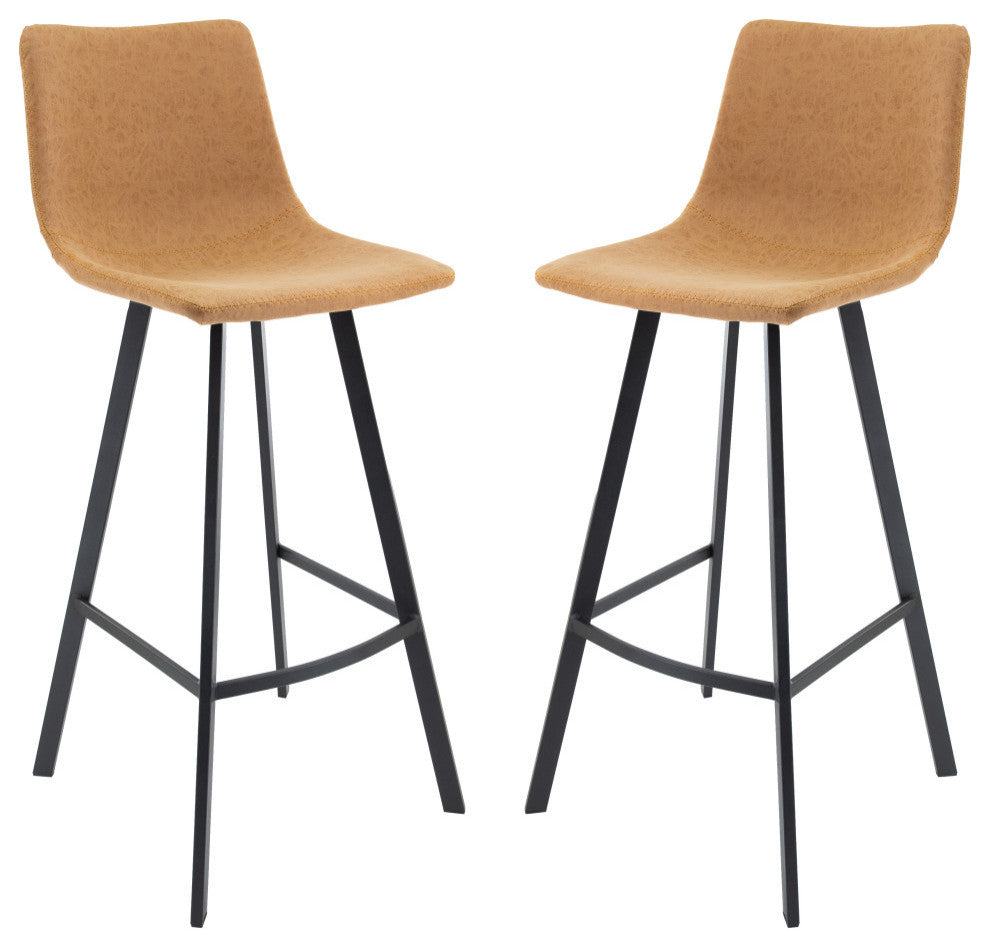LeisureMod Elland Modern Leather Bar Stool Iron Legs Set of 2, Light Brown