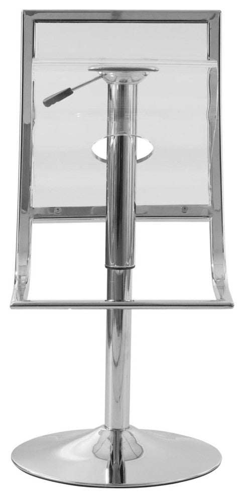 Effortlessly stylish, the Napoli Bar/Counter Stool adds a great modern accent to any setting. One look and youll be instantly impressed with its charm. The Bar/Counter Stool offers an impressively comfortable seat for your counter or bar table. The stool features a seat made of clear thick acrylic. Its clarity makes it instantly captivating and stylishly modern. Its seat is perfectly paired with a chrome base and foot rest. It conveniently swivels and features a gas lift, making it easy to adjust its height to integrate with your counter or bar. Additionally, the stool has an added adjusted which allows you to adjust the stool even lower than a typical bar stool, to accommodate dining table height. However you choose to set the Napoli Bar/Counter Stool, its captivating look and simple modernism make the perfect addition to any contemporary space. • Crafted of a curved clear acrylic seat. • Frame, base and footrest in mirror-like shine chrome steel. • Gas-lift piston for height adjustment. • 360 degree swivel. • Adjusts from regular dining chair and lifts up for a bar stool height. • Full rounded plastic non-marking feet for smooth balance. • Extremely durable and easy to clean. • Simple assembly required.Weight Capacity :- 275 lbs LBSDIMENSIONS : - Adjustable Height 22.25"-31, Full Width 16.25" x Full Depth 17.5", Seat Dimensions: Seat Width 13.75" x Seat Depth 14, Backrest Height 4.25"