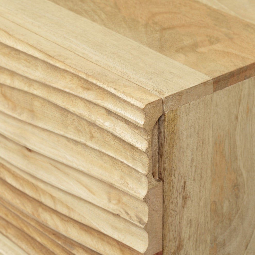Incorporate a charming, creative piece into your home while still maintaining incredible functionality for an impressive upgrade in decor. Featuring beautiful mango wood for a one-of-a-kind style, this accessory offers an artsy modern look for your home with its uniquely designed cabinet door. This textured nightstand is completed with shelving space, giving you ample room to organize your items. With a minimalistic yet exquisite design, our nightstand will easily enhance your decor, bringing out the best of your interior space.