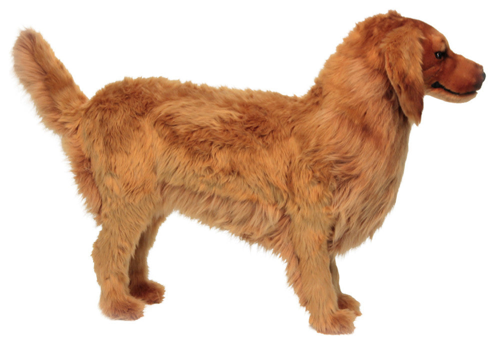 Let your imagination run wild and free with this Life-Size Golden Retriever Stool. Made to educate, to provide creative play, and to wow collectors of all ages, artists created this animal from portraits of the creature in its natural habitat. Its coat was meticulously hand-cut and trimmed, not stamped out by machine. It was sewn inside out, resulting in the minimization of seams. The subtle coloring on the animal was hand painted or airbrushed by specially trained Hansa artisans. It was created with custom-designed plush material made from high pile 100% Modacrylic fiber.