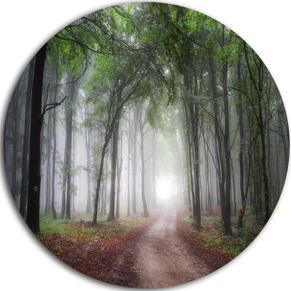Light Through Green Fall Forest, Landscape Disc Metal Wall Art, 11"