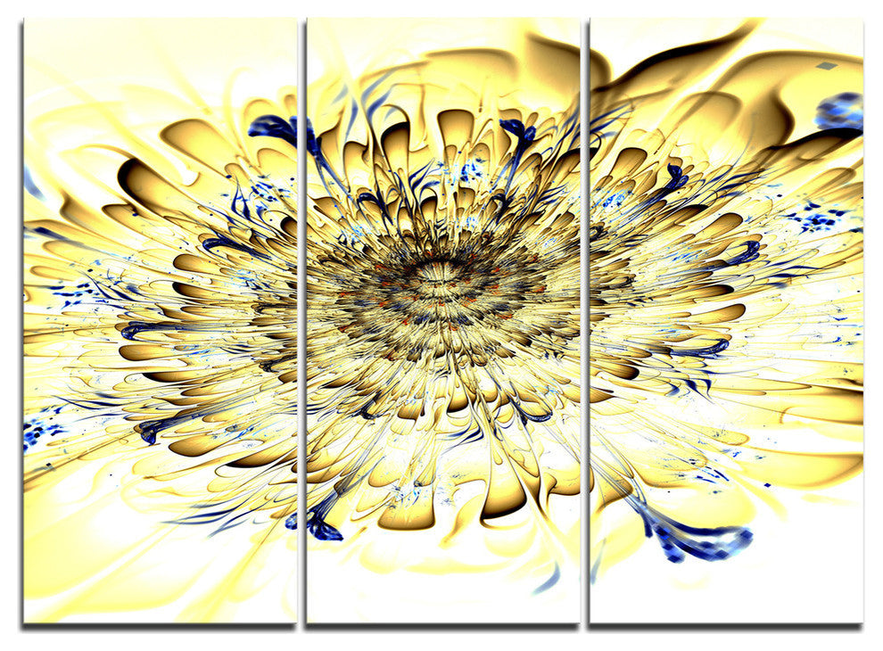 "Light Yellow Digital Fractal Flower" Metal Wall Art, 3 Panels, 36"x28"