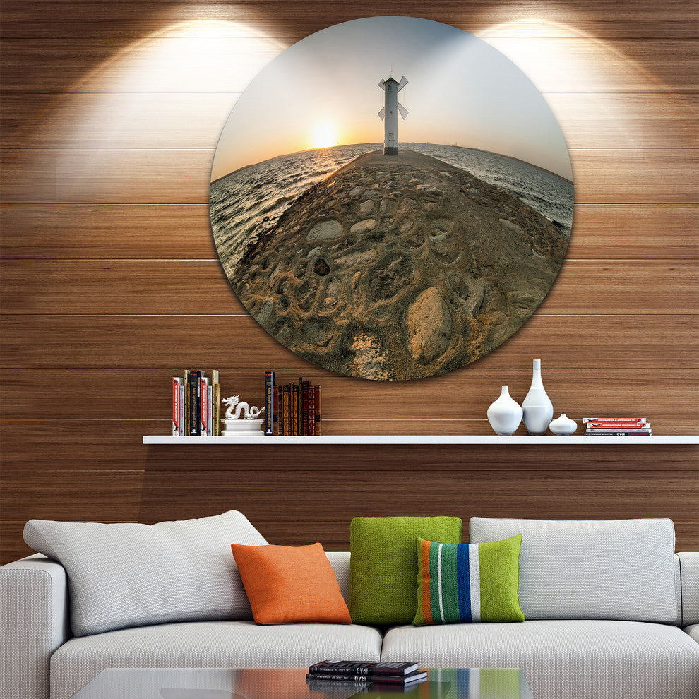 Lighthouse Windmill Stawa Mlyny, Seashore Round Wall Art, 36"