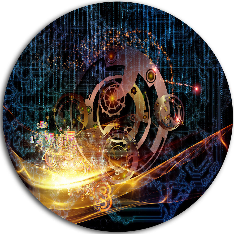 Lights Of Gears, Abstract Digital Art Large Disc Metal Wall Art, 38"