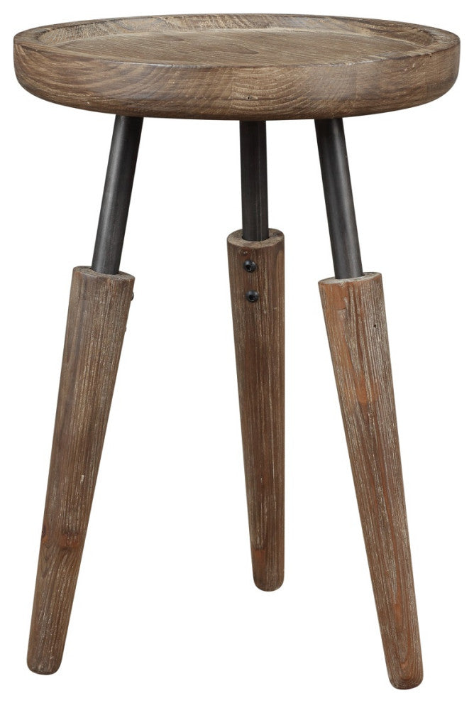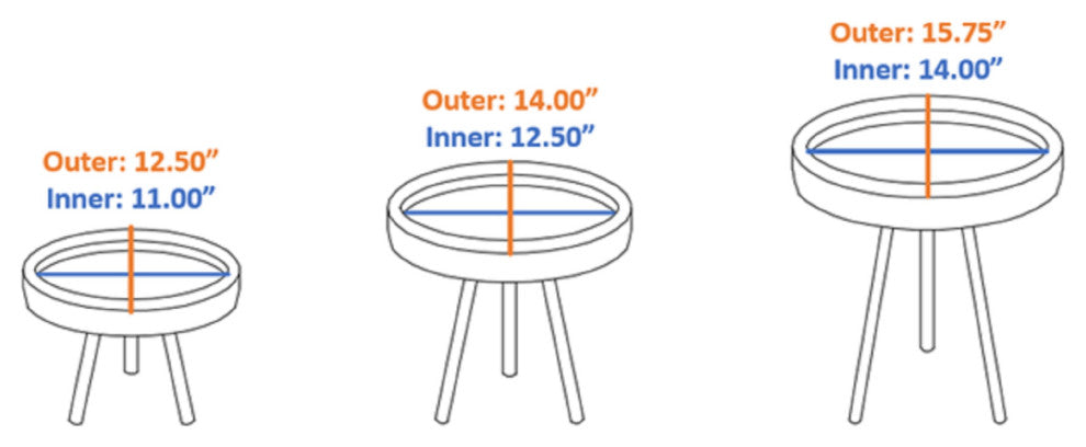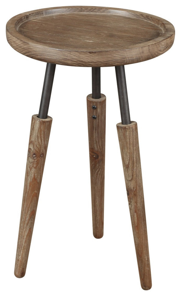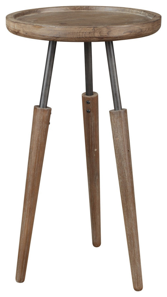 The Lily 3pc Accent Side Table Set brings a trio of charming accent tables to your home. Now, every seat in the living room can have a table next to it to hold dessert pates or coffee mugs when guests come over. This three-piece nesting table set is crafted from reclaimed fir wood, with metal accents. The wood undergoes a multi-step finishing process that includes wire brushing. This brings this retro set an additional vintage quality. Each round tabletop rests on a structural tripod base with tapered legs.