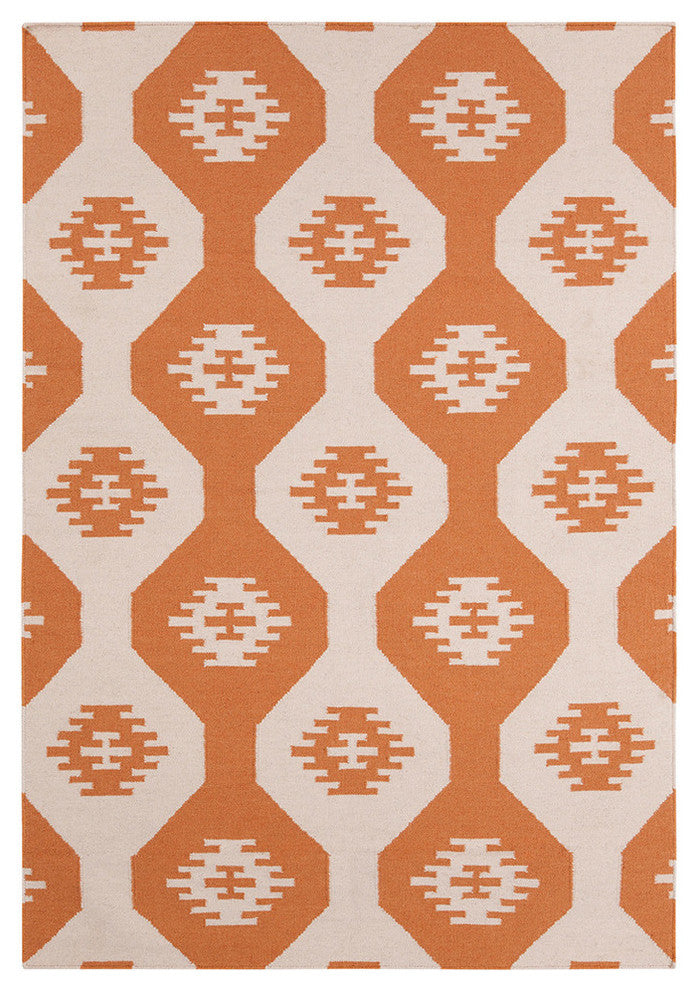 Lima Contemporary Area Rug, White and Orange, 3'x5'