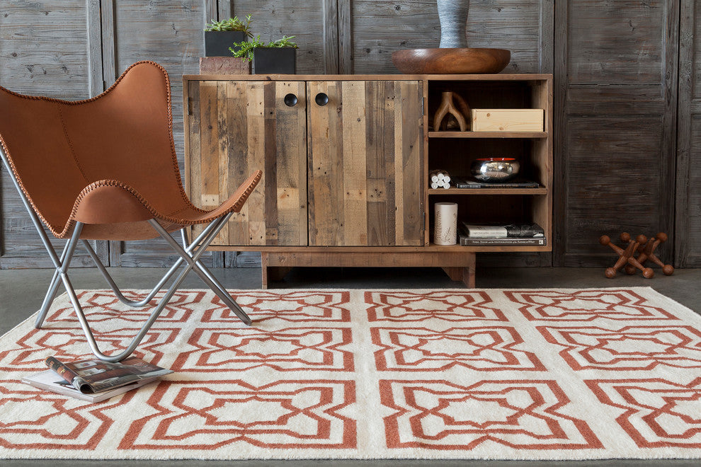 Lima Contemporary Area Rug, White and Orange, 7'x10'