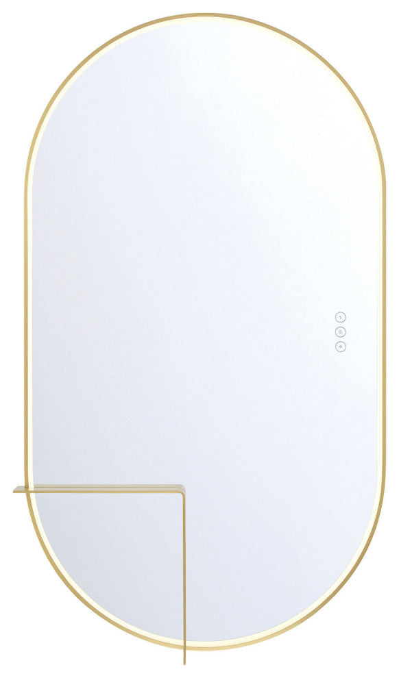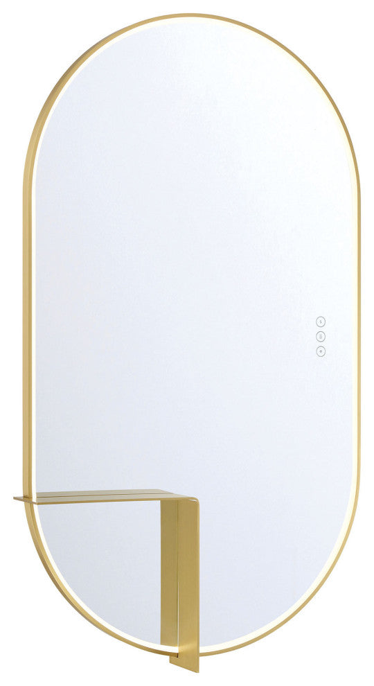 The Linden 24" x 42" mirror in gold features a unique capsule shape, combining Art Deco elegance with modern functionality. With integrated LED lighting, this mirror is perfect for spaces where you want to make a statement, like bathrooms or bedrooms, while enjoying energy-efficient illumination. This product is cETLus certified.•Number of Lights: 1•Bulb Type: LED integrated•Wattage: 80W•LED Color Temperature (K): 3000/4500/6400K•Dimmable: Yes•Bulb Included: Yes•Voltage: 120V•Hardwire or Plug-in: Hardwired