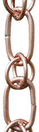 This link chain, in pure solid copper, features a Link & Loop inset into the chain. This design provides for excellent water flow. Exclusive design by Garm Beall. This chain is sold by the linear foot. Comes with our recommended accessory: 3" Copper Installation Kit.If you??re looking for a charming solution to ridding your roof of water, rain chains are an elegant alternative to the more traditional gutter downspout. These whimsical chains guide water from your roof down to the ground in loops or cups. The combination of water happily trickling down plus the fun and intricate designs of the cups and loops make a rain chain a fascinating water feature that??s easy to add to any home.The rain chain originated in Japan, and if you happen upon a Japanese temple you may spot one gracefully guiding the water down to the ground or into a nearby rain barrel. Installation of rain chains at home is fairly simple as they hang from the hole where your downspout would have gone. If you prefer something more refined than a rain barrel, you can create a shallow bowl out of redwood or cedar and fill it with small pebbles or place a paver stone of your choice beneath your rain chains. Another option may be a ceramic or copper bowl, as well.SKU: RC3133-11Unfinished, pure copper.Link length: 2 1/2", width: 1 1/4", thickness: 3/16".Hand-crafted.Comes with a 3" Copper Installation Kit.A great addition and complement to copper gutters.Popular as an architectural element.Designed in the USA.Free Standard Shipping!
