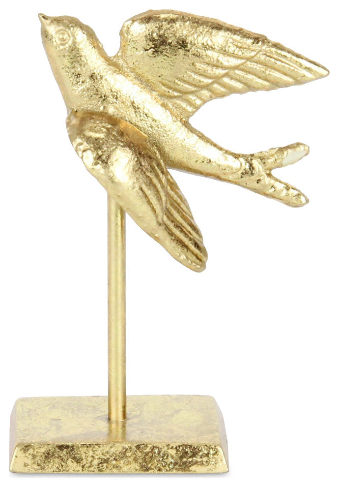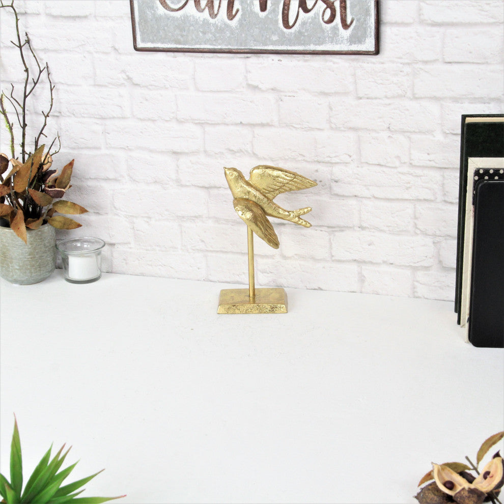 Accent your home and space with a wonderful stylish accent piece. From shelves to dining tables, entryways to bedrooms, smaller decor pieces have found their way into spaces that need a finishing touch of flair or design. Featuring a depiction of a flying swallow figure and a shiny gold finish, this piece will be an eye-catching addition to any room it is in.