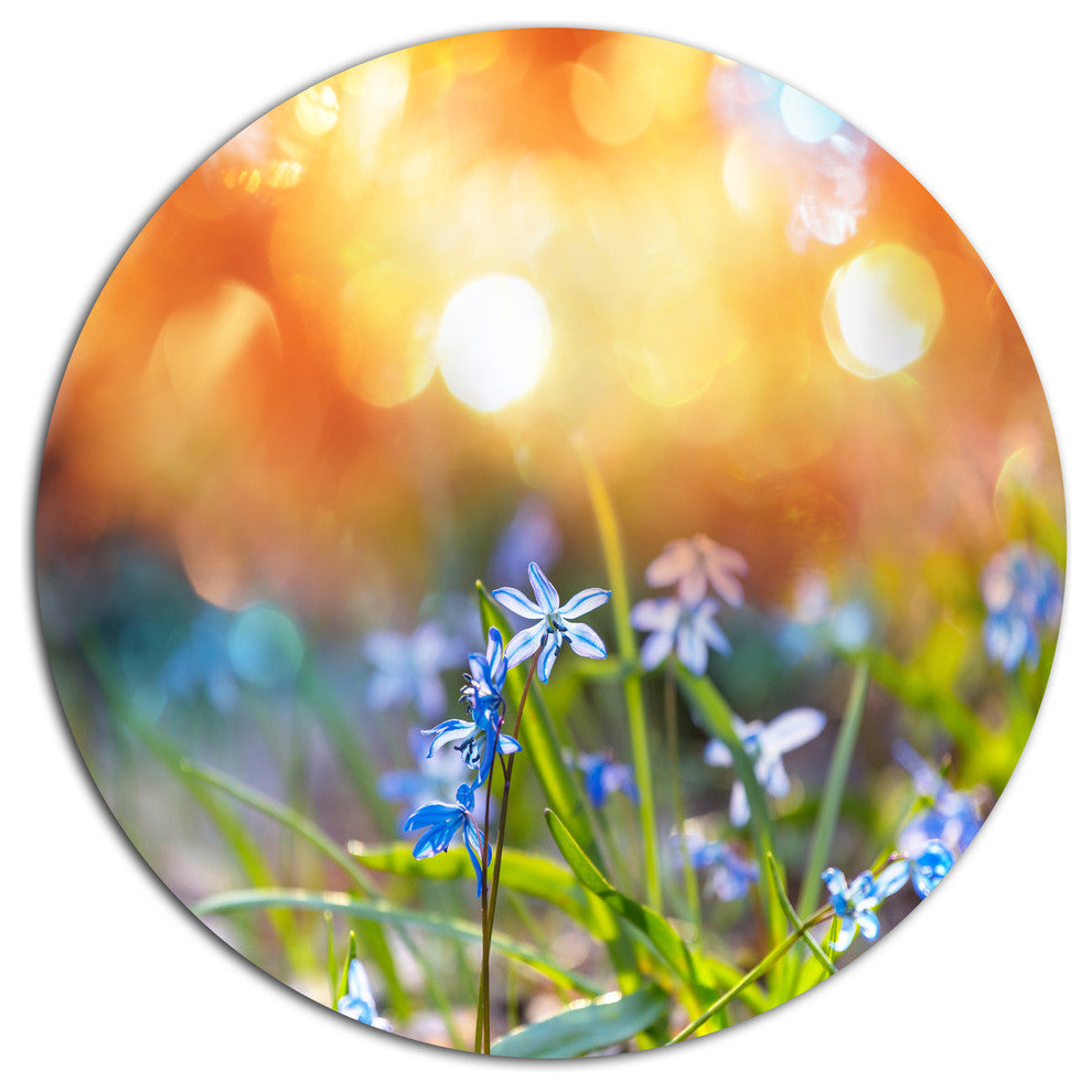 Bring Contemporary Abstraction to your home with this large Circle Metal wall art. This Little Flowers Meadow with Snowdrops Metal Artwork makes it the focal point of any room or office.