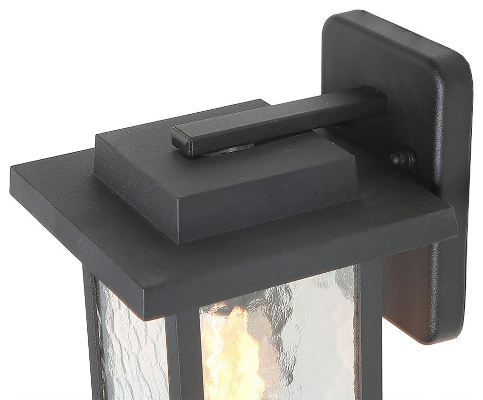 LNC 11-in Matte Black Water Proof Square Wall Sconce, Texutred Glass