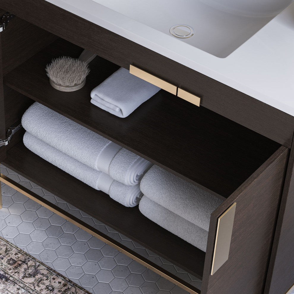 Lockhart Bath Vanity, Black Oak, 36", Satin Brass Hardware, Single Sink, Freestanding