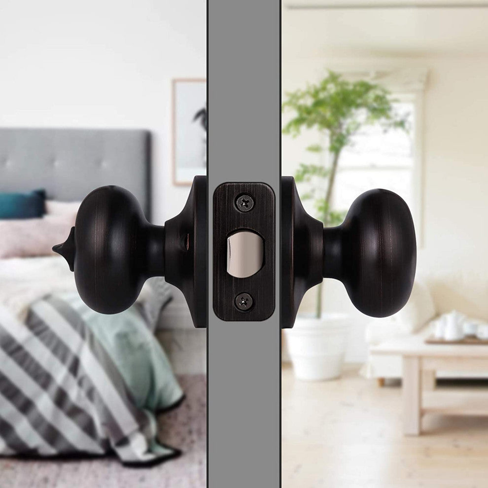 Features:EASY INSTALLATION: Install your knob set in a flash. All you need is a door and a tool set! No need for professional door fitters, you can do it yourself!PRIVACY FUNCTION: The door knob can be locked inside and opened outside in emergency WITHOUT keys. Use it for your guest rooms, bedrooms, bathrooms, interior locking doors and other privacy needs; Material: Metal; Finished Color: Oil Rubbed Bronze.ONE SIZE FITS MOST: This bronze door knob fits 1-3/8" to 1-3/4" doors; Reversible for both left handed and right handed doors. (Notice: The latch plate is unremovable.)DURABLE QUALITY: The solid steel & stainless steel, smooth finish, polished appearance and substantial, easy-to-grasp door knob will subtly elevate and enhance commercial areas or residences alike.CLASSIC DESIGN: It"™s not just a door knob "” it"™s a statement piece. These gorgeous knobs with no protruding flanges, screws or rough edges ensures completely safe and easy operation, are sure to add a touch of sophistication to your home.