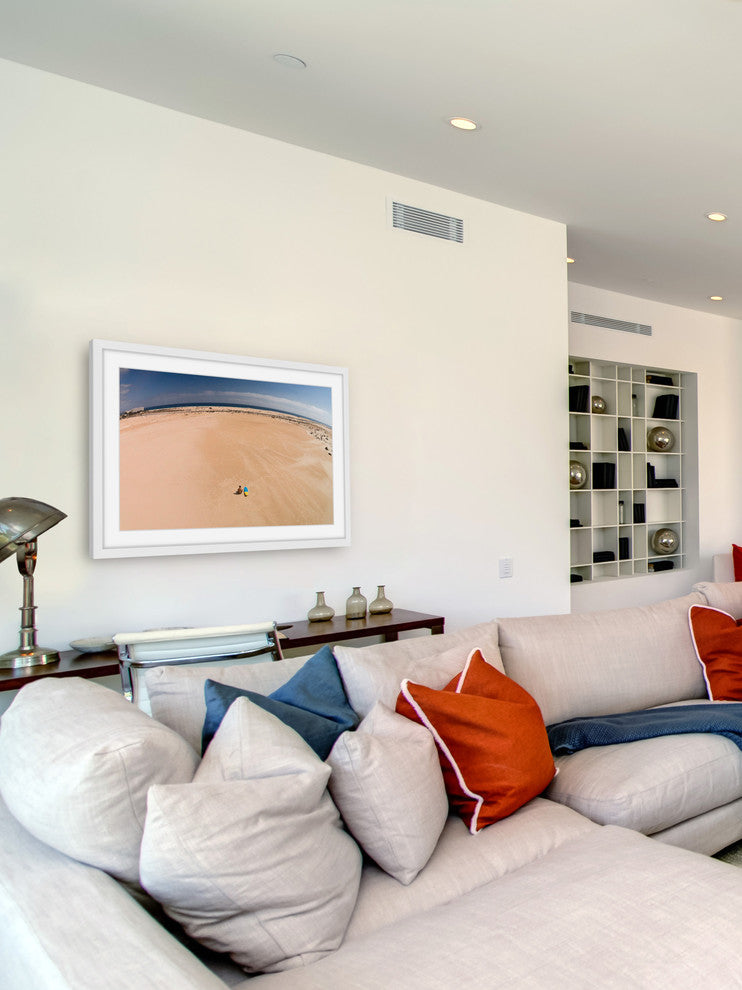 "Lone Surfer''S View" Framed Print by Karolis Janulis features vivid tones and supple artistry. Mounted in a gorgeous frame, this 18 inch wide by 12 inch tall piece will be an exceptional addition to any room. Top quality Giclee print on high resolution Archive Paper Artwork by Karolis Janulis Professionally framed and mounted on acid free archive matte High quality durable non-warping frame Arrives ready to hang Includes a certificate of authenticity Made in the USA