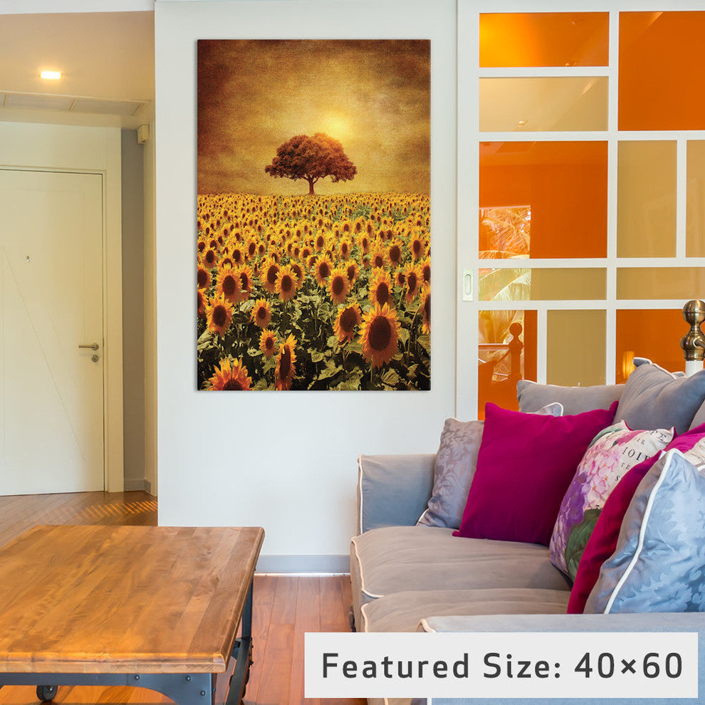 "Lone Tree & Sunflowers Field" by Viviana Gonzalez, 26x18x1.5