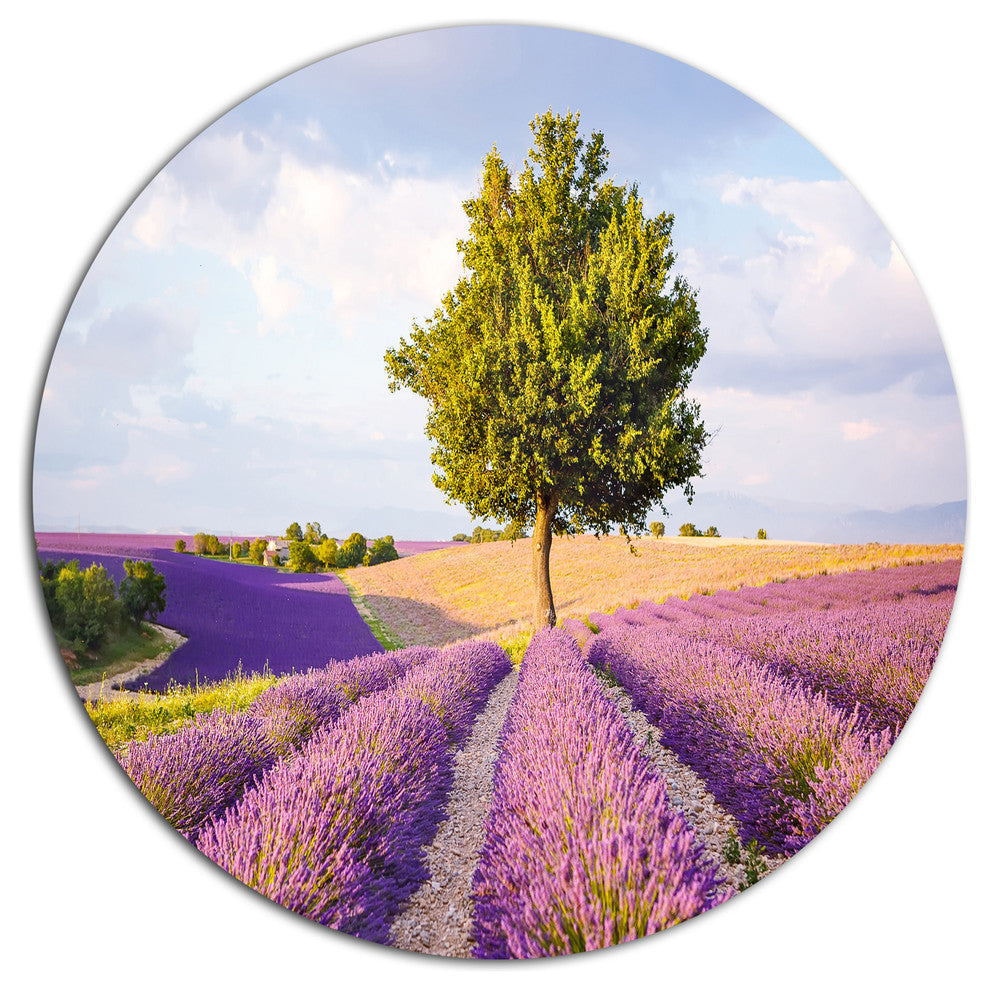 Lonely Green Tree In Lavender Field, Landscape Round Wall Art, 36"