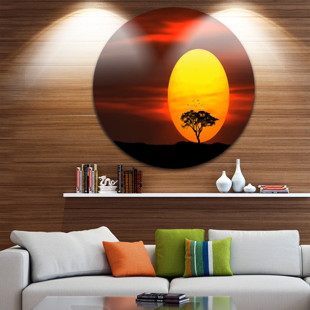 Lonely Tree With Birds At Sunset, Round Wall Art Landscape, 23"