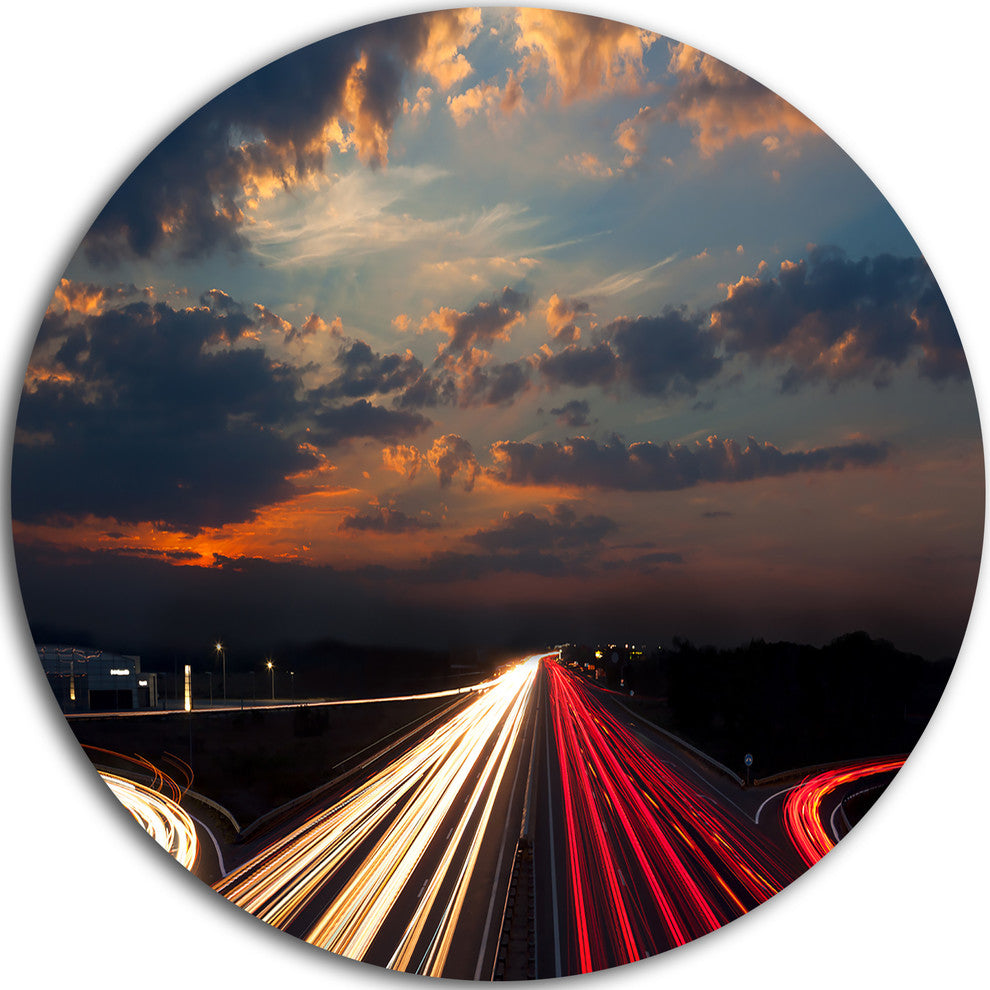 Long Exposure Traffic, Abstract Digital Art Round Metal Wall Art, 36"