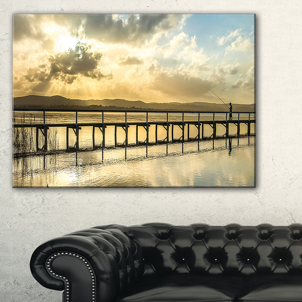 "Long Jetty Foreshore Reserve Panorama" Sea Bridge Canvas Wall Artwork, 32"x16"