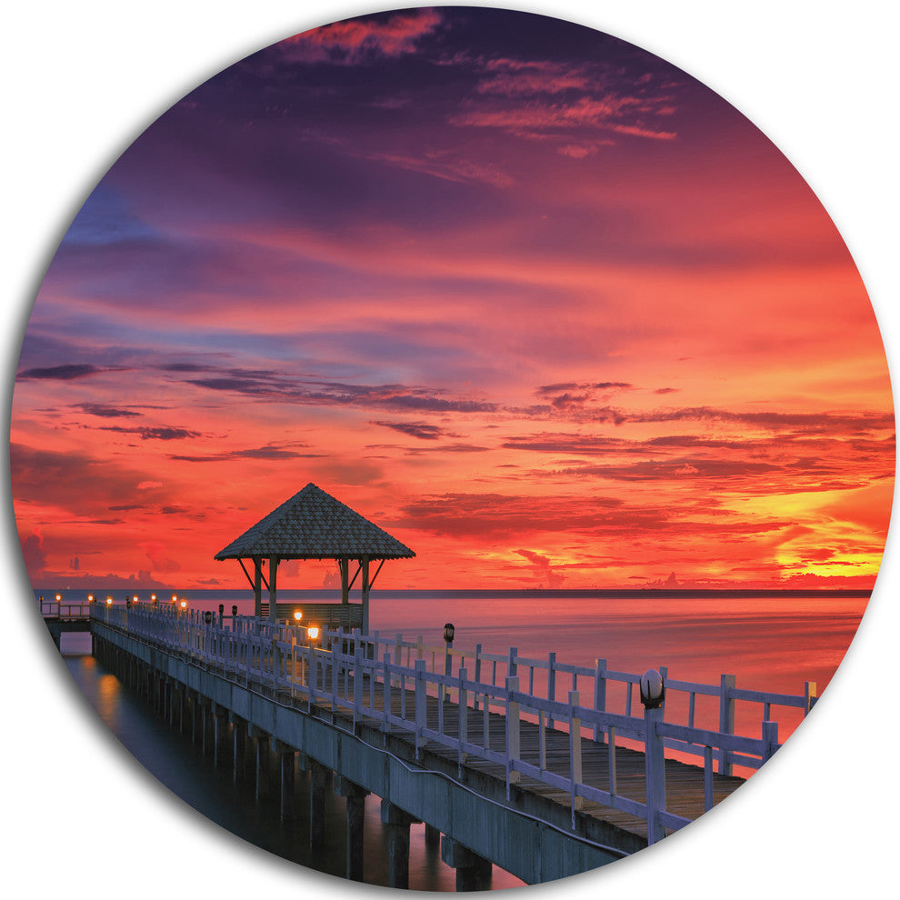 Long Wooden Bridge And Colorful Sky, Sea Bridge Round Wall Art, 11"