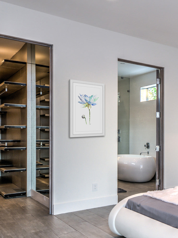 "Lotus" Framed Print by Rachel Byler features vivid tones and supple artistry. Mounted in a gorgeous frame, this 30 inch wide by 45 inch tall piece will be an exceptional addition to any room. Top quality Giclee print on high resolution Archive Paper Artwork by Rachel Byler Professionally framed and mounted on acid free archive matte High quality durable non-warping frame Arrives ready to hang Includes a certificate of authenticityMade in the USAArtist signature on the front
