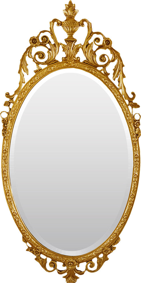 This oval mirror is a prime example of the late XVIII century when Rococo styling utilized foliage and scrolls. The open design gave a light feeling and emphasized the quality detailing of a fine mirror.
