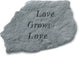 Create a charming first impression in your garden with this decorative rock. The inspiring typography etched on this piece brings a whimsical touch to your space. With a cool gray finish and natural texture, this keepsake leaves no stone unturned when it comes to style. Indoor and outdoor useMaterials: Cast stoneColor: GrayDimensions: W 11" x D 0.5" x H 7.5"