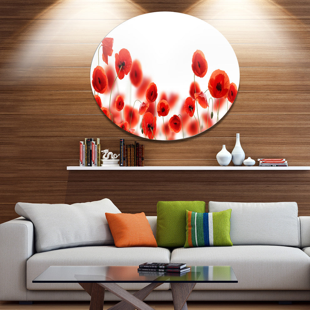 Lovely Poppy Flowers On White, Modern Floral Round Metal Wall Art, 23"