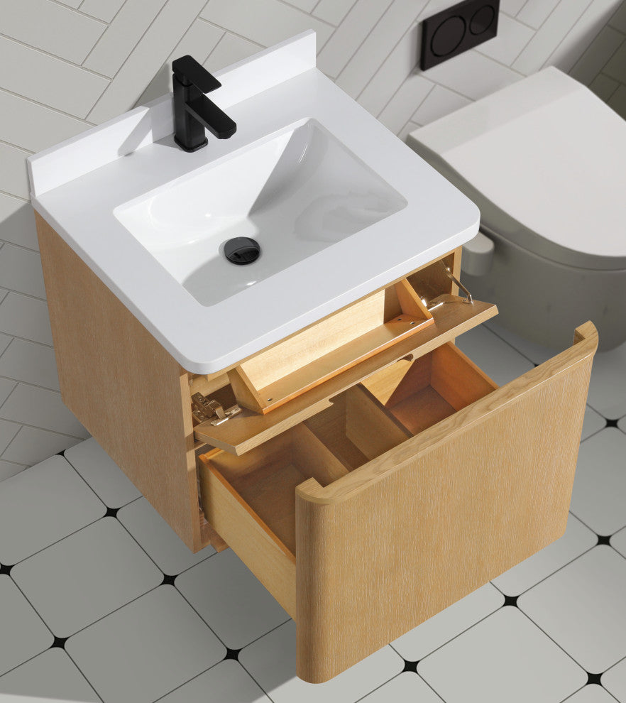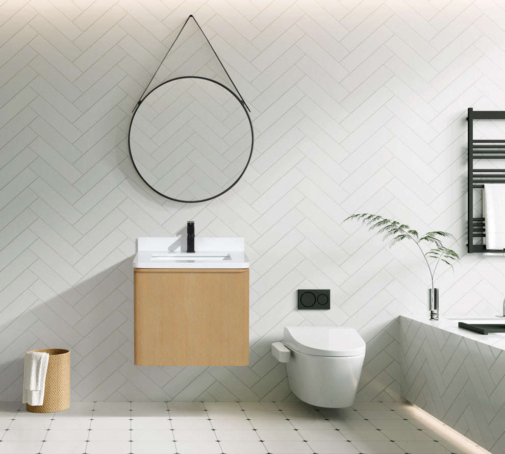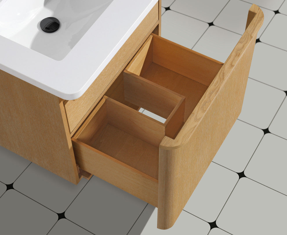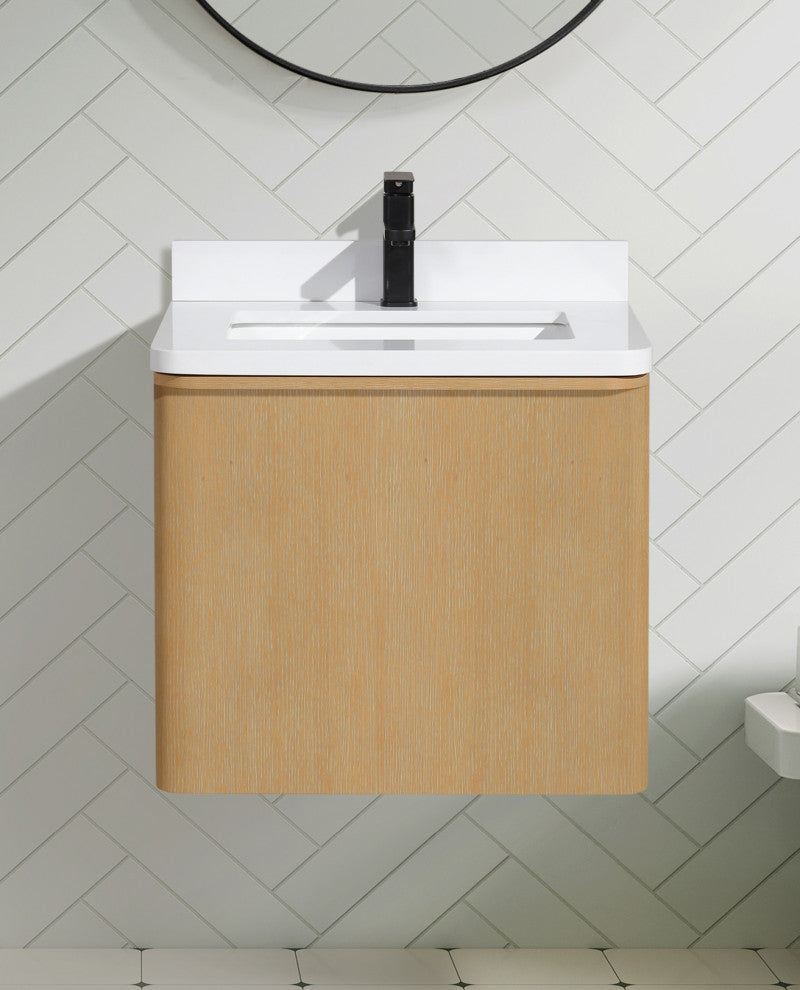 Lucas Bathroom Vanity, Washed Oak, 24", Single Sink, Floating