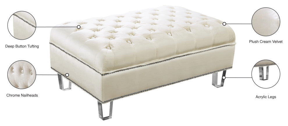 Lucas Velvet Upholstered Ottoman, Cream
