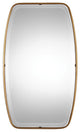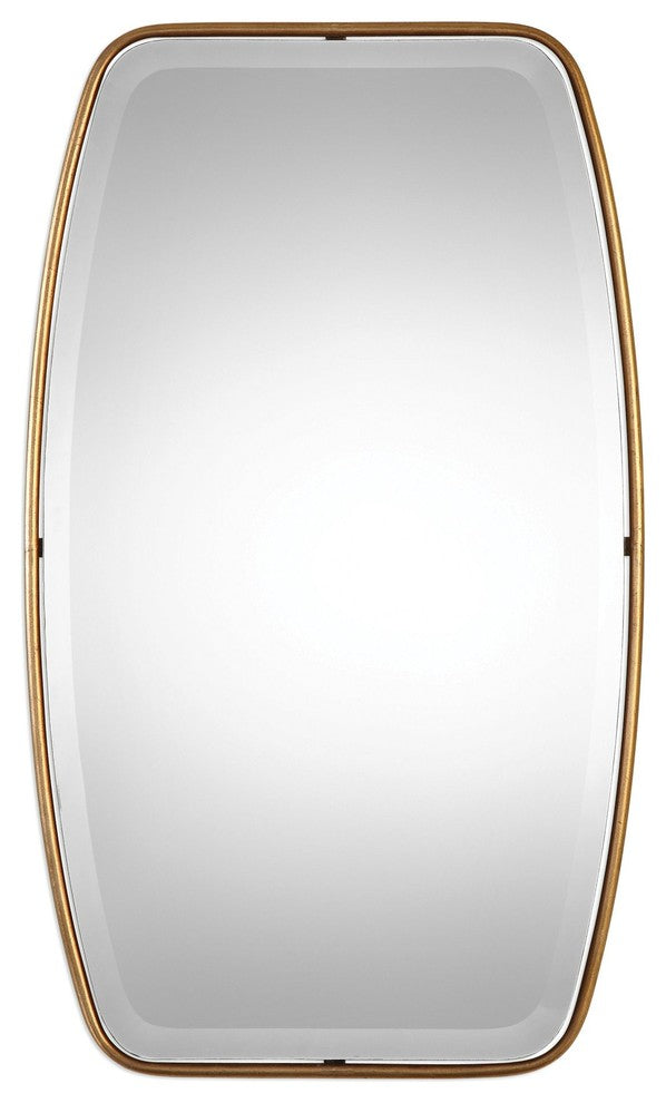 This Shaped Mirror Frame Is Forged From Rounded Metal Finished In A Heavily Antiqued Gold Leaf Featuring A Floating Beveled Mirror.• 36"H x 21"L x 0.75" deep. Weighs 19.3 lbs. Glass is 34.6"H x 19.75"L.• Hand Finished Metal Frame• Properly weighted hanging hardware attached. Can be hung vertically or horizontally.• Heirloom Quality - Expertly hand crafted and hand finished. Due to the hand crafted nature of this piece, each piece may have subtle differences.
