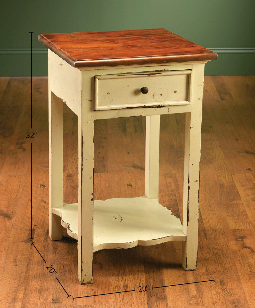 Bring an antique charm to your spaces with Lynda End Table. Constructed from solid mahogany wood. It boasts a simple build brimming with traditional aesthetics and it easily blends with various design styles. The table comes with a single drawer and a shelf underneath where you can store your everyday items.Features:Overall product dimensions are 20" W x 20" D x 32" HConstructed solid mahogany woodSimple and traditional build that you can place in your living or bedroomsIt comes with a single drawer and shelf for storageAvailable in multiple color variationsDimensions:End TableAssembled Product: 20 inches wide x 20 inches deep x 32 inches highWeight Capacity: 50 pounds