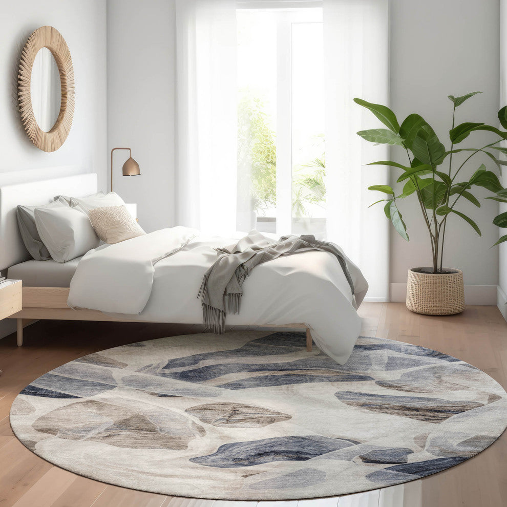 Machine Washable Indoor/Outdoor Chantille ACN1863 Putty 8' x 8' Round Rug
