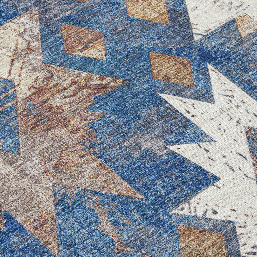 Add a touch of tribal charm to your home with this rug''s expansive diamond design in a vibrant Aztec pattern. Suitable for both indoor and outdoor settings, its UV stabilization ensures lasting durability and color preservation. This ultra-thin, flat woven rug provides convenience with its machine washable feature, making it ideal for families and pet owners. The integrated non-skid backing removes the need for an additional rug pad, reducing extra costs.
