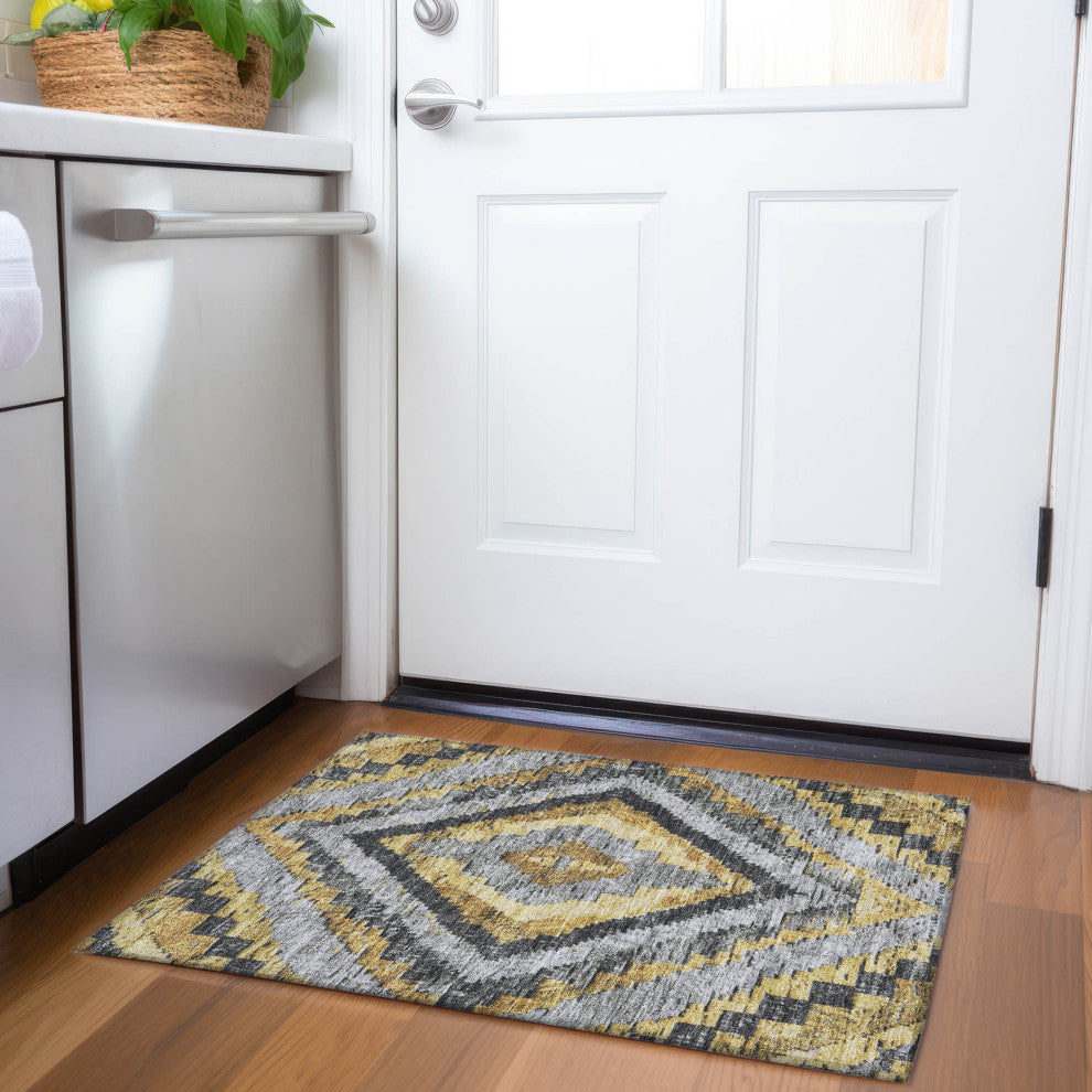 Machine Washable Indoor/Outdoor Chantille ACN1890 Gold 1'8" x 2'6" Rug