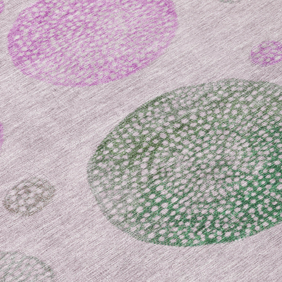 Revitalize your living space or garden with this transitional rug, decorated with a striking geometric pattern of dot-filled circles. Its UV protection makes it equally suitable indoors and outdoors. Enjoy hassle-free maintenance with its machine washable design and safe, non-skid backing, reducing expenses by negating the necessity for an extra pad.