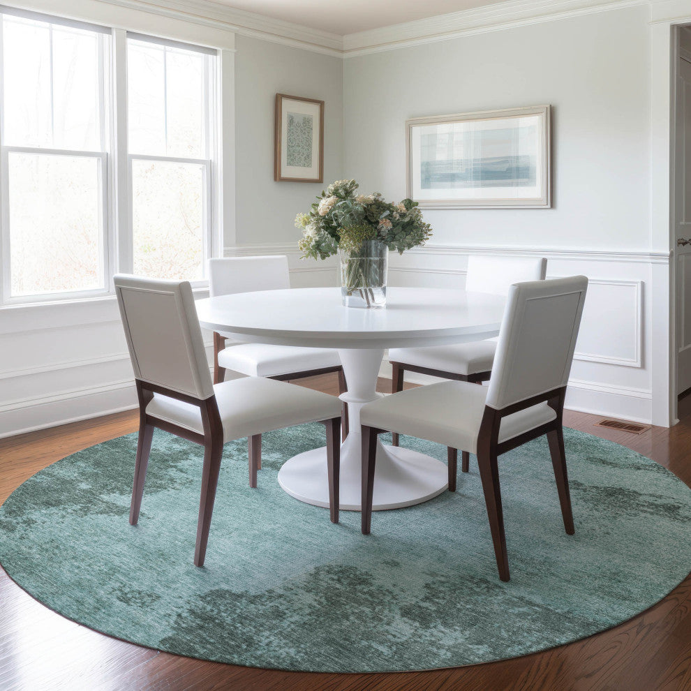 Machine Washable Indoor/Outdoor Chantille ACN1902 Teal 8' x 8' Round Rug