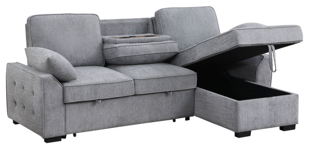 Mackenzie 91" Chenille Reversible Sleeper Sectional, Drop-Down Table, Light Gray