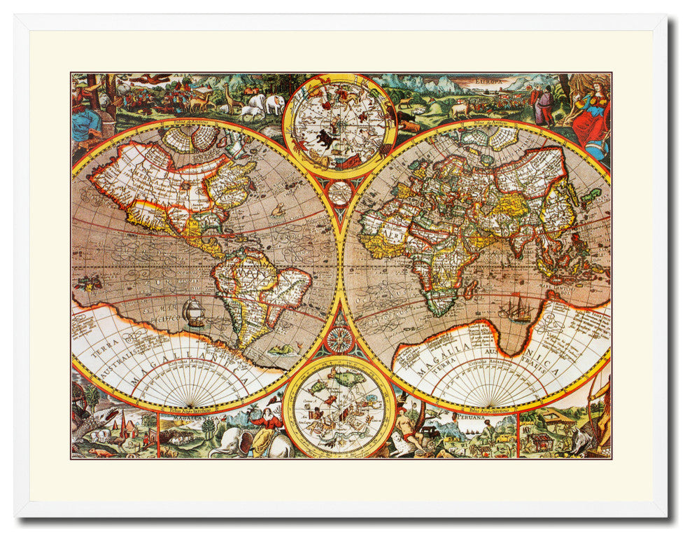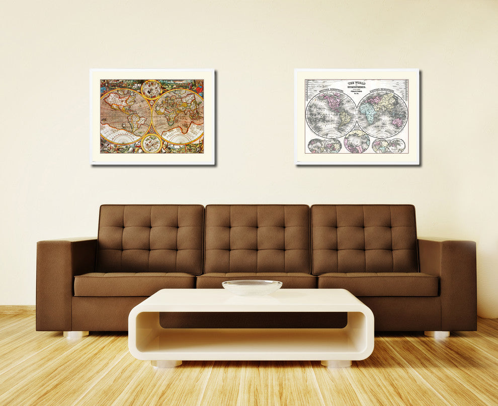 Macro Close-Up Vintage Old Map Print On Canvas With Picture Frame 28" X 37"