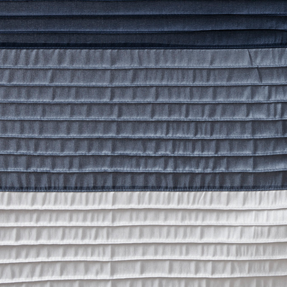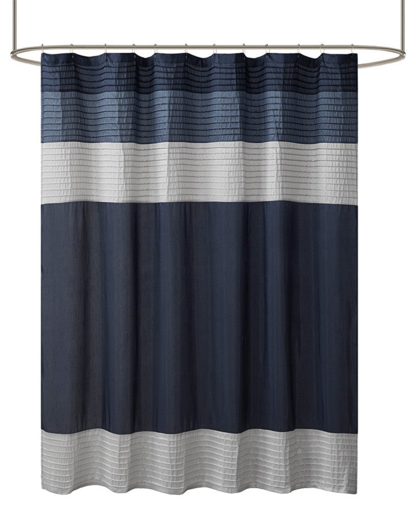 Easily transition your bathroom with this simple, yet beautifully classic shower curtain. The faux silk dupioni fabric has a natural light sheen and drapes beautifully, while also machine washable for easy care. This lightweight shower curtain features pieced and pintucking details creating a rich texture and a unique color block design, sure to freshen up any space. Pattern layout may vary due to variation of sizes. A water repellant liner is not included, and highly recommended. Complete the collection and look with coordinate bath decor, bedding, and window decor - available and sold separately.FEATURESFaux silk lightweight dupioni fabric shower curtain in 72x72 inchesPieced and pintucking detailing for unique texture and colorblock designLight sheen from faux silk fabricMachine washable for easy careWater repellant liner is not included but reccomendedOEKO-TEX Certified, includes no harmful substances or chemicalsCoordinate bath decor, bedding, and window decor available and sold separatelyMATERIALS100% polyester faux silkSIZE 1 Shower Curtain:72x72"