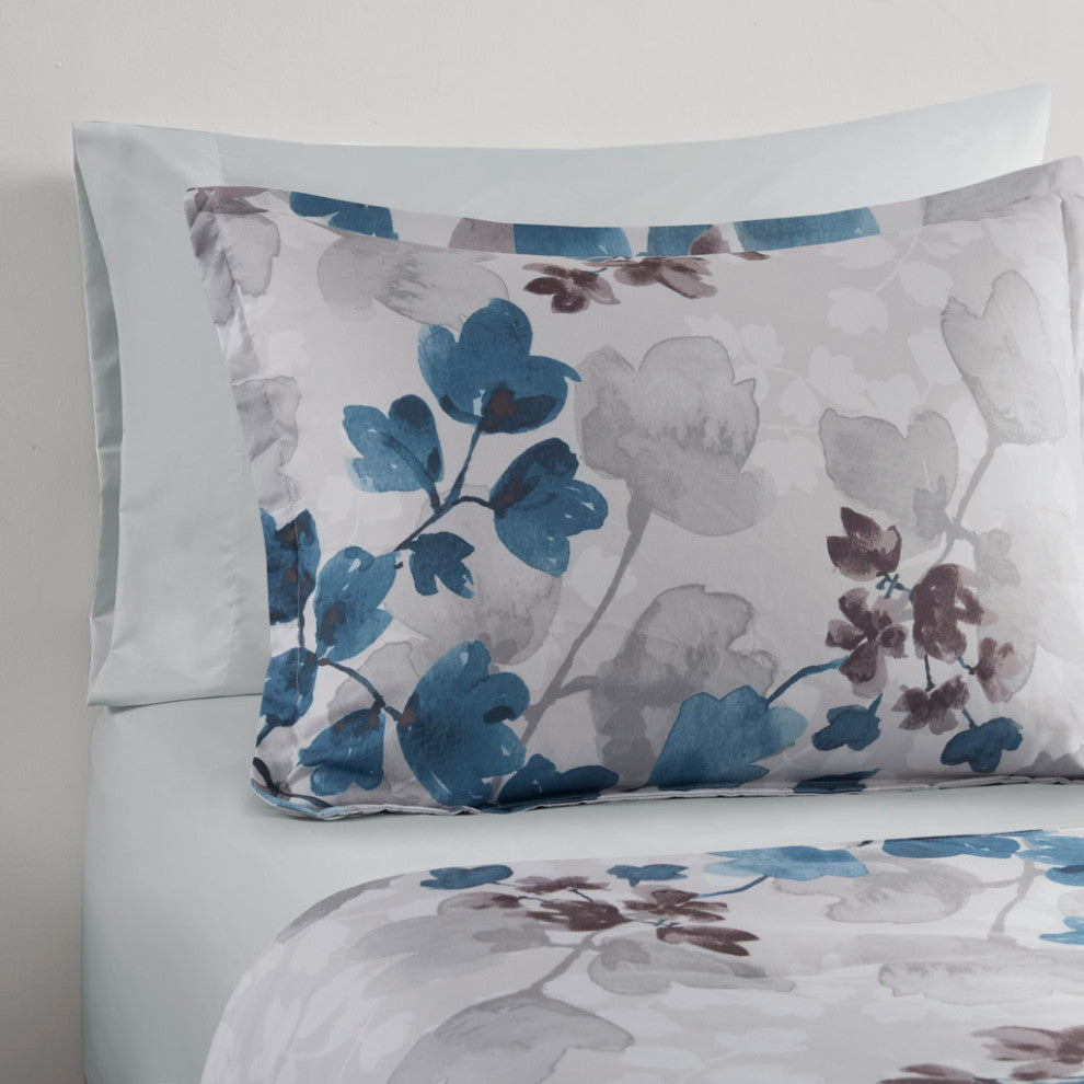 Breathe new life into your bedroom with this beautifully modern floral comforter set and bed sheets. A stunning blue, white, and gray leafy floral print on ultra-soft microfiber to create a cozy and stylish botanical look with a contemporary flair. A complete sheet set in a coordinating grey color is also included, along with bonus pillowcases in blue. The fitted sheet is specially designed with 2 side pockets on each side as convenient storage for your cell phone or small electronic devices. Transform your bed and add a touch of elegance and charm with this bed in a bag.FEATURESComplete modern botanical bed set with comforter and sheet set featuring blue and gray leafy floral printUltra soft microfiber; Hypoallergenic polyester filling in the comforter and decorative pillows (filling contains no allergens and is treated to be dustproof)Fitted sheet comes with two convenient side pockets on each length side for extra bedside storage that''s perfect for your small electronic devicesSet includes comforter, 2 shams (1 in Twin/Twin XL), flat sheet, fitted sheet, 2 pillowcases (1 in Twin/Twin XL), 2 bonus pillowcases (1 in Twin/Twin XL)Fitted sheet fits up to 17 inches mattress depth (14 inches for Twin and Twin XL)Antimicrobial treatment helps reduce bacteria build up and prevent odors so the fabric stays fresher longerMachine washable for easy careItems in this set may come in rolled or compressed packaging and will need to be fluffed upMATERIALSComforter/sham: 100% polyester microfiber printed face, microfiber solid backFilling: 100% polyesterSheet set: 100% polyester microfiber solid; Fitted sheet with 1 pocket on each side.Anti-microbial treatmentSIZE 1 Comforter:104"W x 90"L2 King Shams:20"W x 36"L (2)1 Flat Sheet:108"W x 102"L1 Fitted Sheet:78"W x 80"L + 15"D2 King Pillowcases:20"W x 40"L (2)2 Bonus Pillowcases:20"W x 40"L (2)