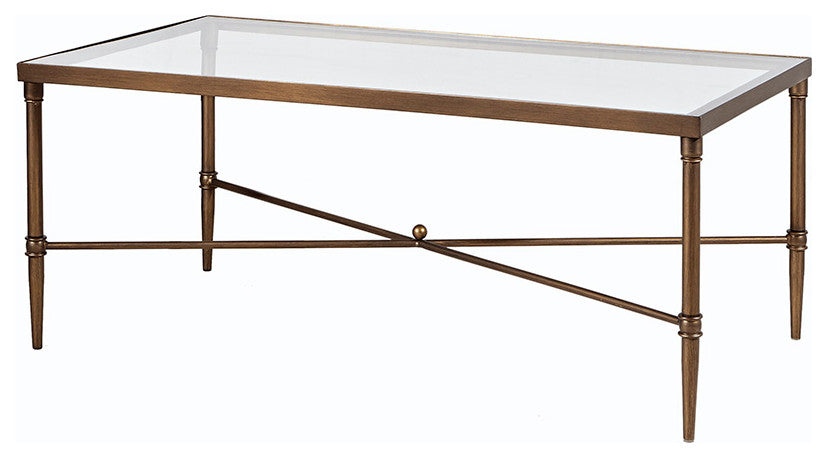 The sturdy bronze metal finished frame and tempered glass top makes this table the center off attention. Assembly required.Size :1 Rectangle Coffee Table:44Wx24Dx18.25H"Material:Frame Composition: Metal, 5MM temp GlassLegs/Finish: Metal BronzeFeatures:Metal frame in bronze finish5mm Tempered glass table topDimensions: 44Wx24Dx18.25H"Assembly required