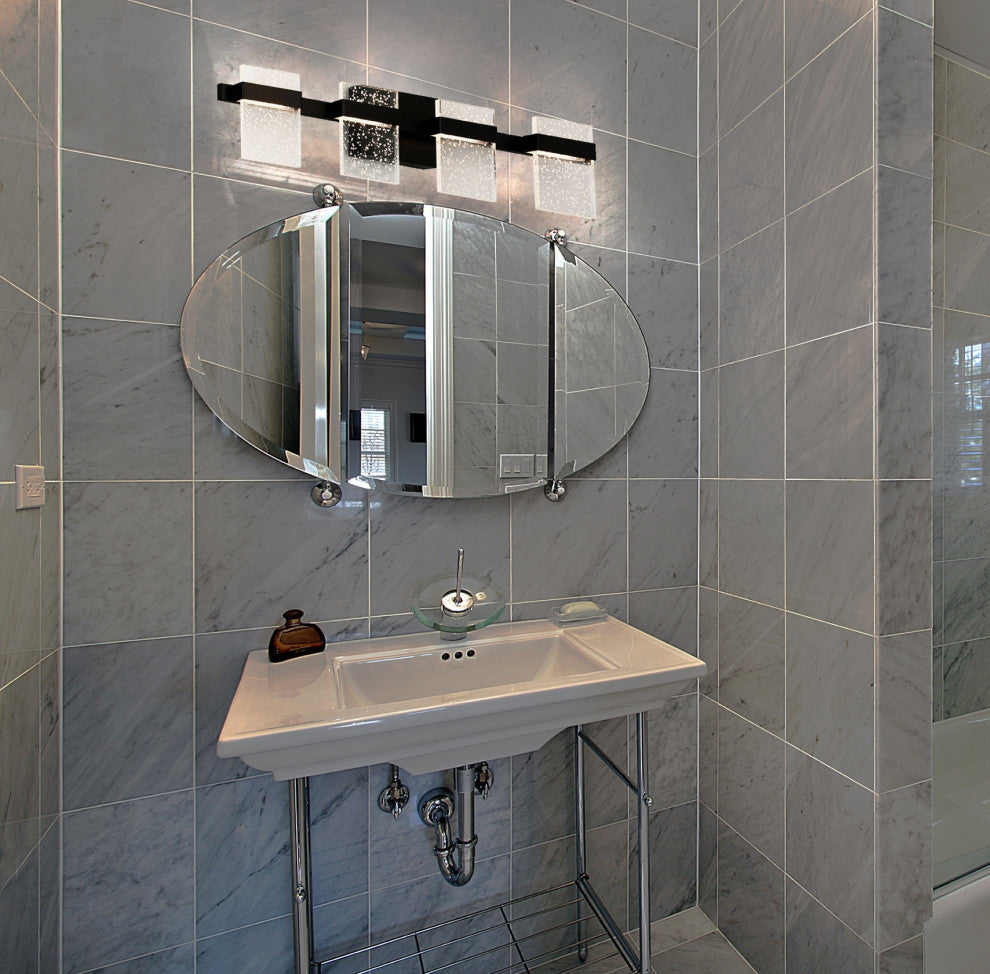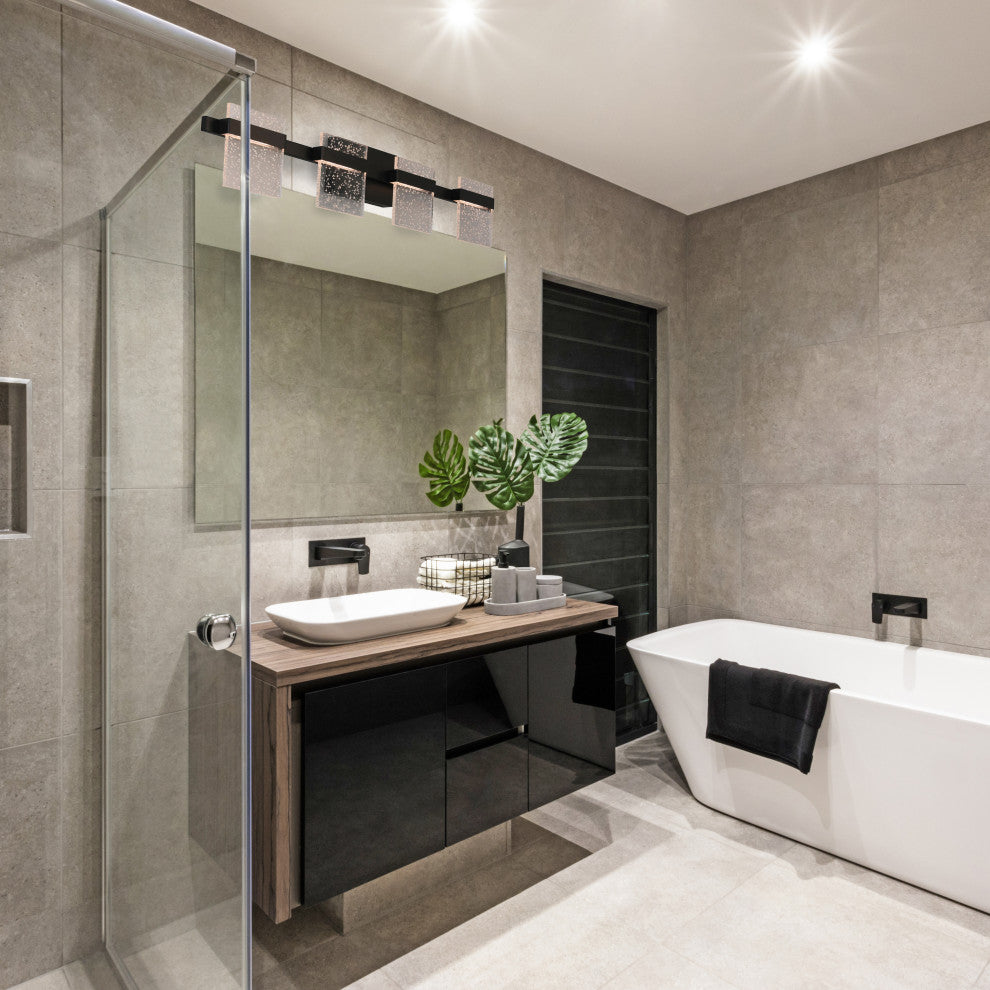 Madrona 4 Light LED Bath and Vanity Light Clear Seedy, Black
