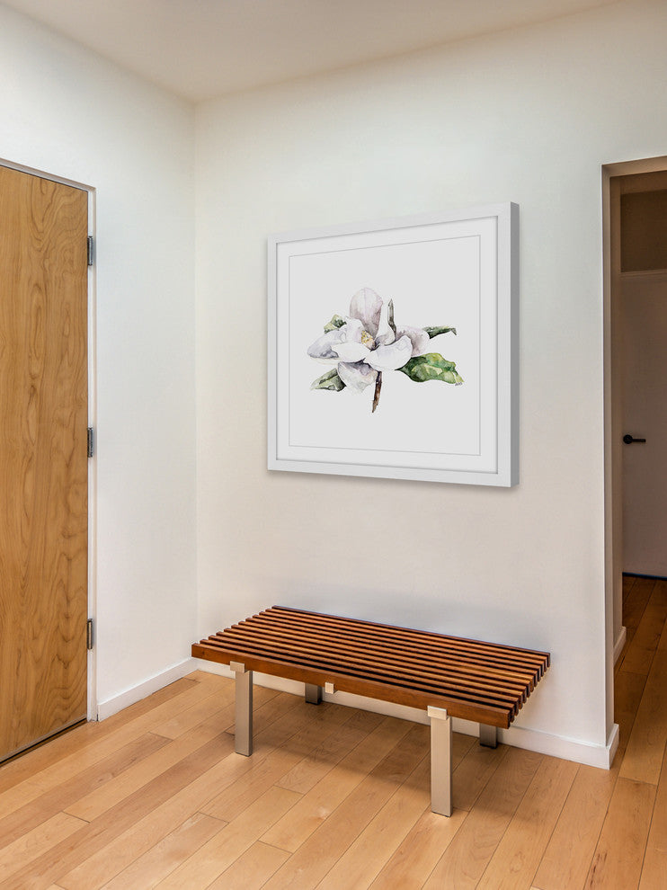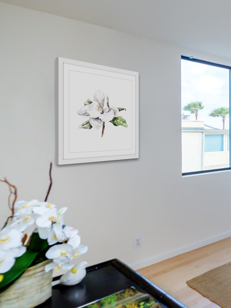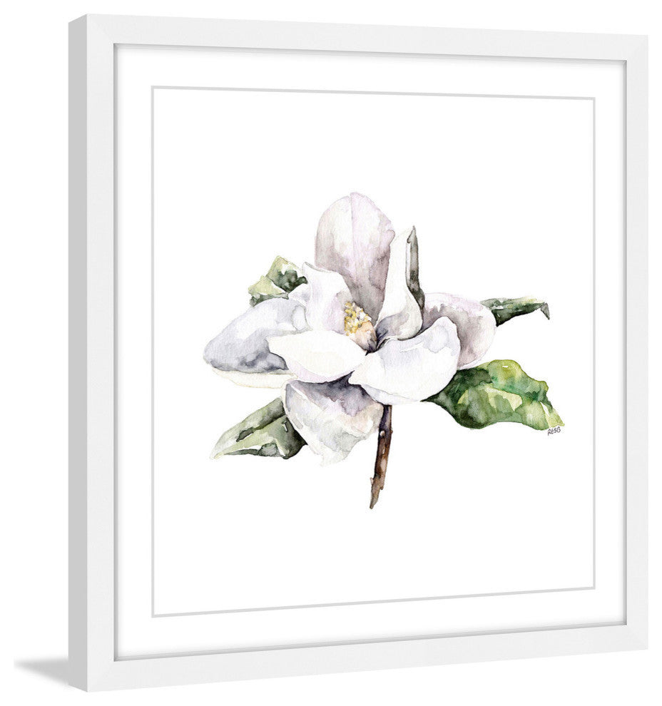 "Magnolia 4" Framed Print by Rachel Byler features vivid tones and supple artistry. Mounted in a gorgeous frame, this 18 inch wide by 18 inch tall piece will be an exceptional addition to any room. Top quality Giclee print on high resolution Archive Paper Artwork by Rachel Byler Professionally framed and mounted on acid free archive matte High quality durable non-warping frame Arrives ready to hang Includes a certificate of authenticityMade in the USAArtist signature on the front