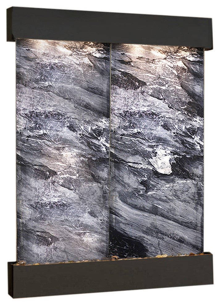 Majestic River Water Fountain, Black Spider Marble, Blackened Copper, Square Edg